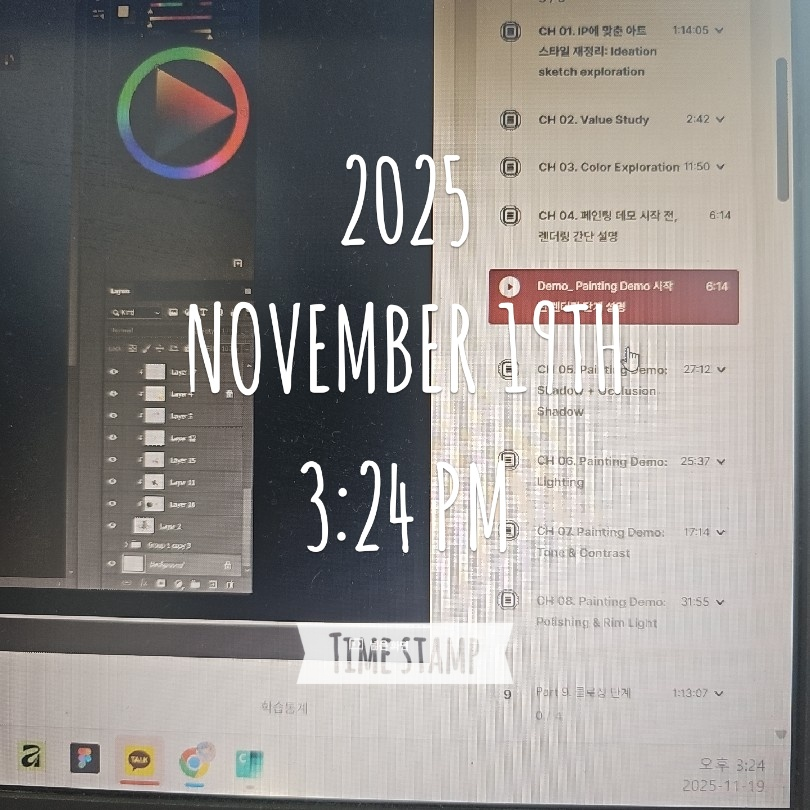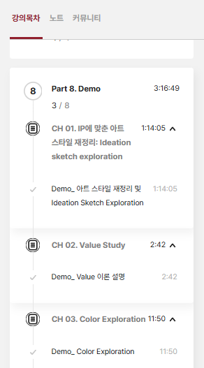 | 캐릭터 시트 제작 관련 실무 내용을 보여주시는 Ch. 8.을 일부 수강하였다. |