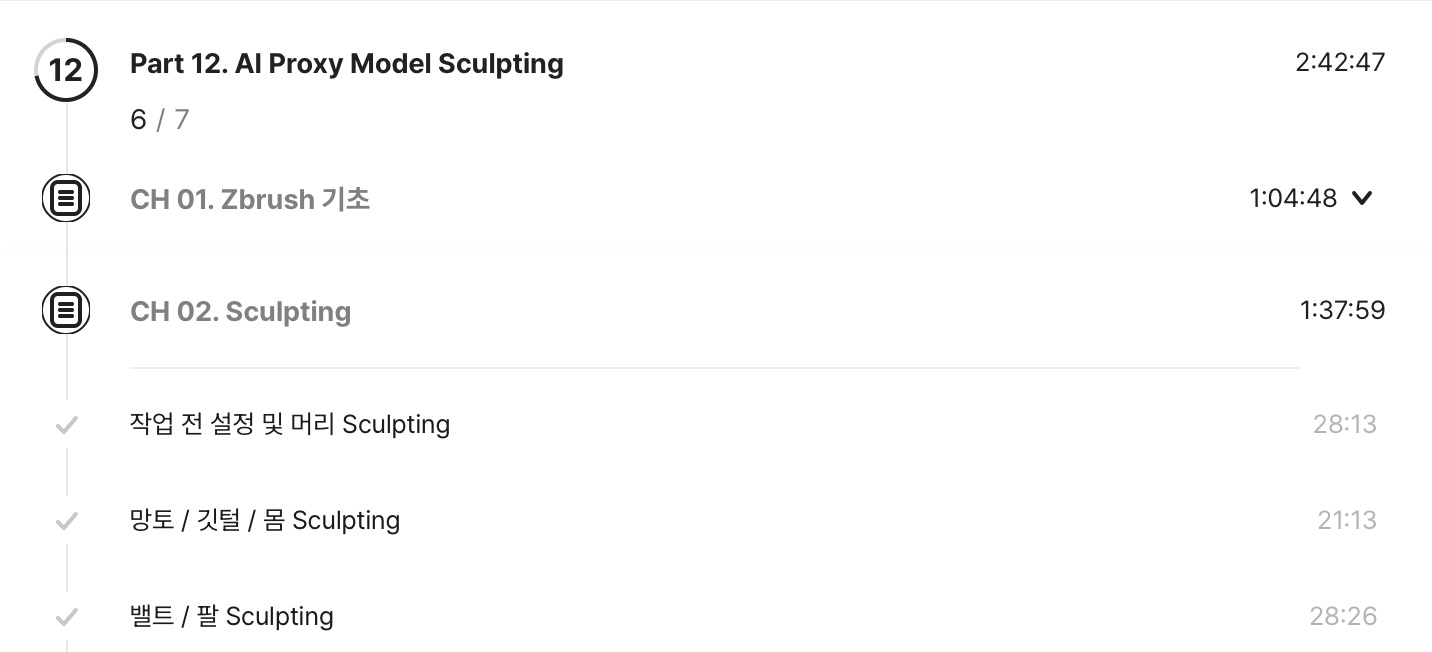 | 어제 이어 Zbrush로 Sculpting 하는 강의를 연속으로 수강하였다. |