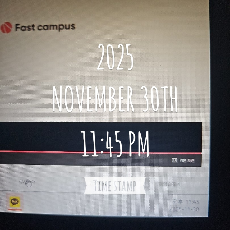 | 오늘 시작 타임 찍는 걸 까먹는 바람에 수강 중간에 찍었더니 강의 수강 시간 보다 한참 모자르게 텀이 찍혔다. | |