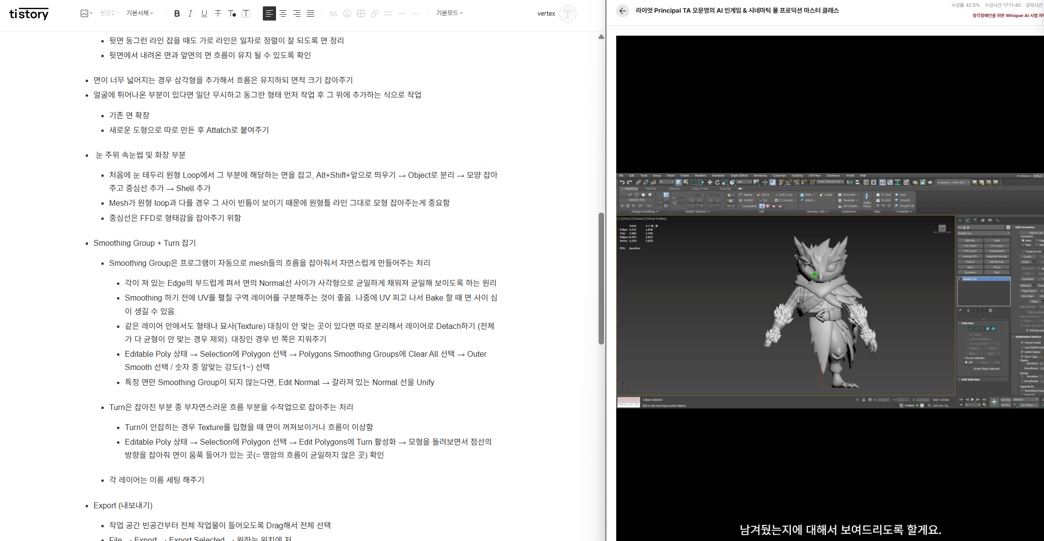 - Smoothing Group은 프로그램이 자동으로 mesh들의 흐름을 잡아줘서 자연스럽게 만들어주는 처리
